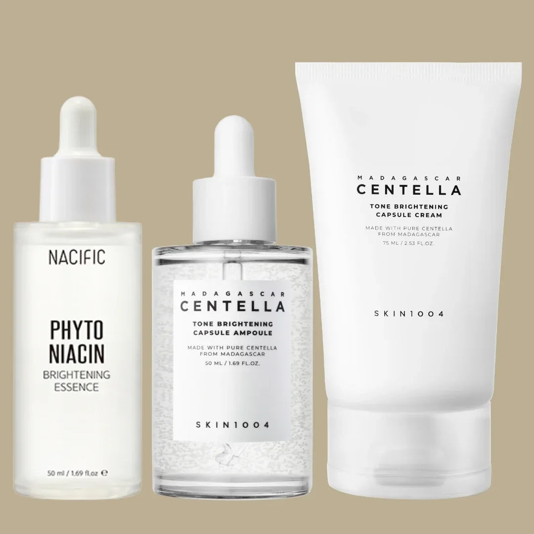Introducing the **Day Brightening Essential Kit**, a curated collection of powerful brightening essentials designed to bring out your skin's natural glow. This kit combines the luminosity-boosting Brightening Essence, the skin-calming and hydrating Brightening Capsule Ampoule, and the moisture-locking NACIFIC Brightening Essence. Finish with the Brightening Capsule Cream for deep hydration and long-lasting brightness. Together, these products work in synergy to enhance skin tone, minimize dullness, and keep your skin refreshed and revitalized all day.