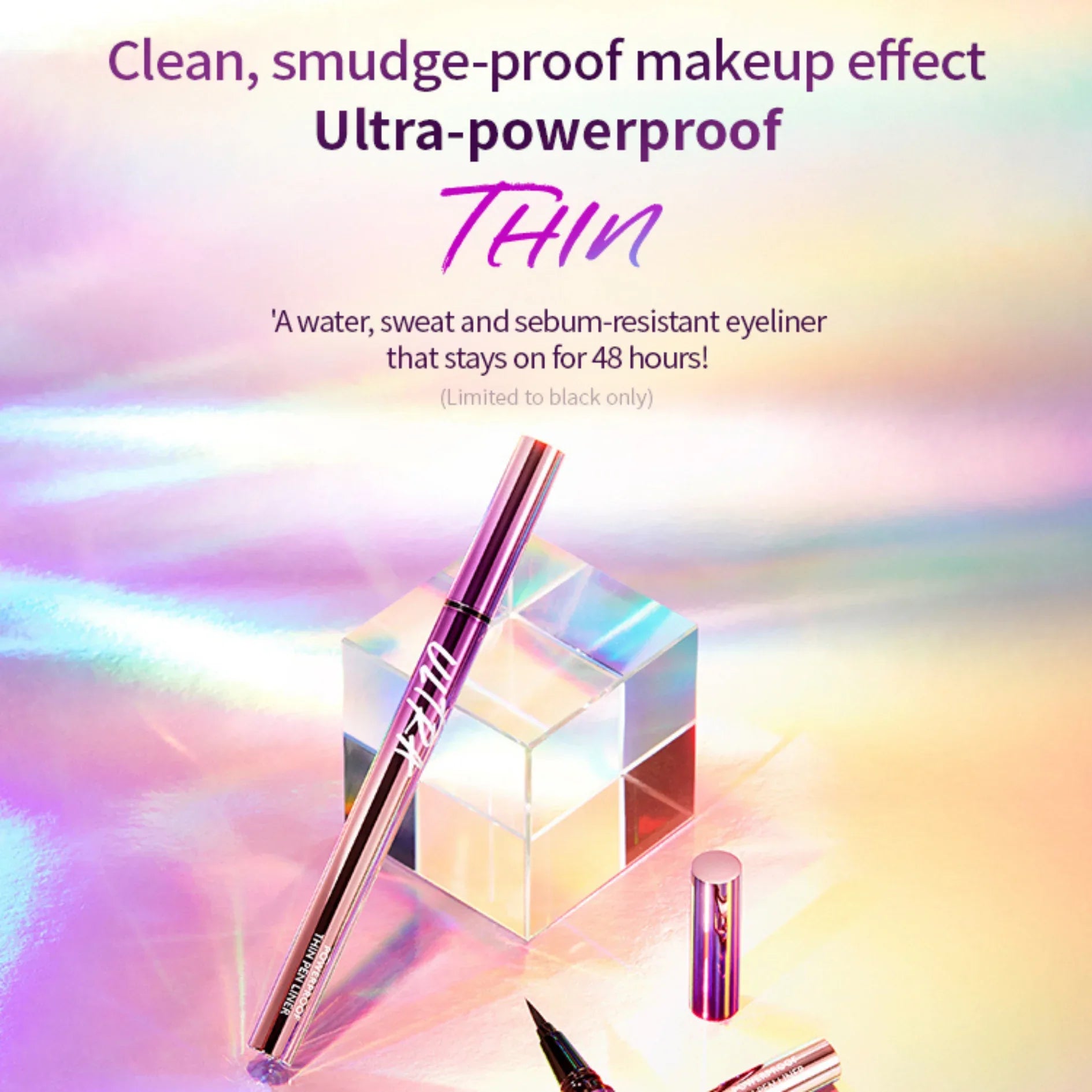 An ultra-powerproof, ultra-thin line that creates pure, innocent-looking eyes with a delicate, slim makeup effect. The super long-lasting formula delivers a reliable smudge-proof finish, even in high humidity or underneath a mask in summer. Resistant to water, sweat, and sebum, it keeps your eye makeup clean, sharp, and fresh throughout the day.