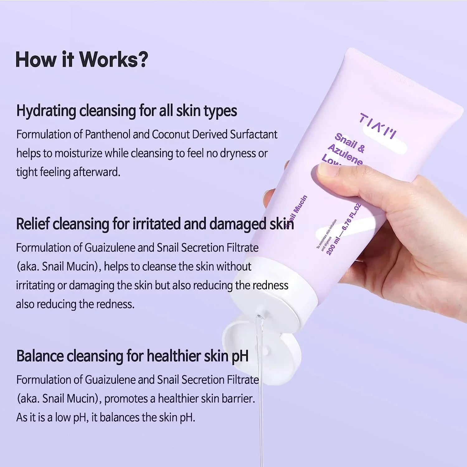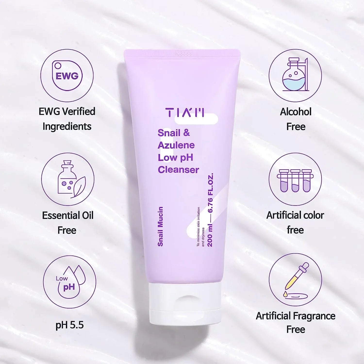 TIA'M Snail & Azulene Low pH Cleanser gently cleanses without disrupting the skin’s moisture barrier. Formulated with snail mucin and azulene, it soothes, hydrates, and leaves skin soft, calm, and refreshed—ideal for sensitive or dry skin.