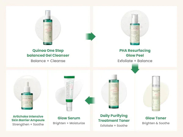 AXIS-Y PHA Resurfacing Glow Peel, a 10% PHA gel-water peel which gently exfoliates the skin and clears the pores to reveal rejuvenated skin. With the extracts of 5 different fruits and vegetables, this peel soothes and clears the skin from the first use. Extracts of Cucumber, Papaya, and Centella Asiatica nourish the skin for a healthy glow.