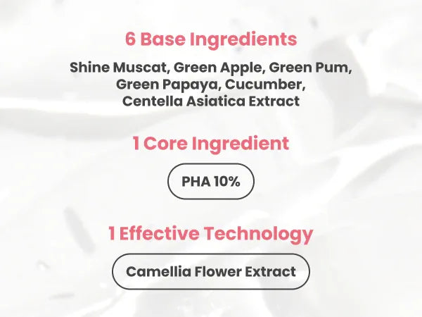 sii|h 0 0, Tromethamine buff, 1,2-Hexanediol solv, Sclerotium Gum vc, Sodium Acrylic Acid/Ma Copolymer vc, Xanthan Gum vc, Ethylhexylglycerin pres, Disodium EDTA chel, Caprylyl Glycol h|emo, Camellia Japonica Flower Extract emo, Carica Papaya (Papaya) Fruit Extract, Pyrus Malus (Apple) Fruit Extract