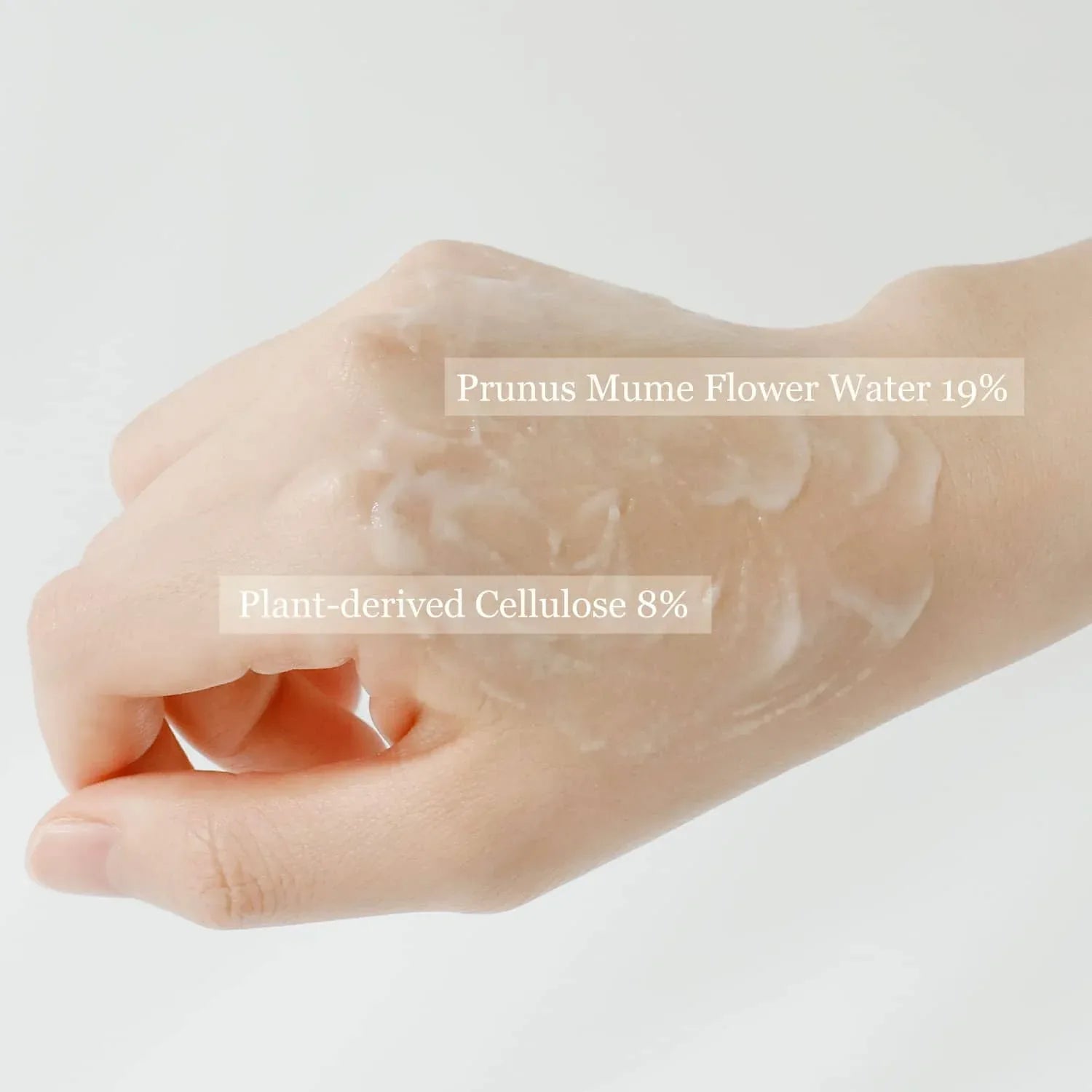 Moisturization : Containing 19% prunus mume water and 8% plant-derived cellulose, it helps make the skin texture soft and moist.