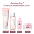 Transform your skincare with the Routine for Oily or Oily to Combination Skin. Start your journey to clear, balanced skin with a cleansing foam that deeply purifies, eliminating excess oil and impurities without compromising moisture. Follow up with an exfoliating toner that unclogs pores and refines your skin, setting the stage for a smoother complexion. The routine continues with a multi-purpose serum that not only exfoliates but also improves skin elasticity, leaving it firm and hydrated. Finally, seal in moisture with a hydrating moisturizer that brightens and evens out your skin tone. This routine is your perfect partner for achieving a radiant, healthy complexion.