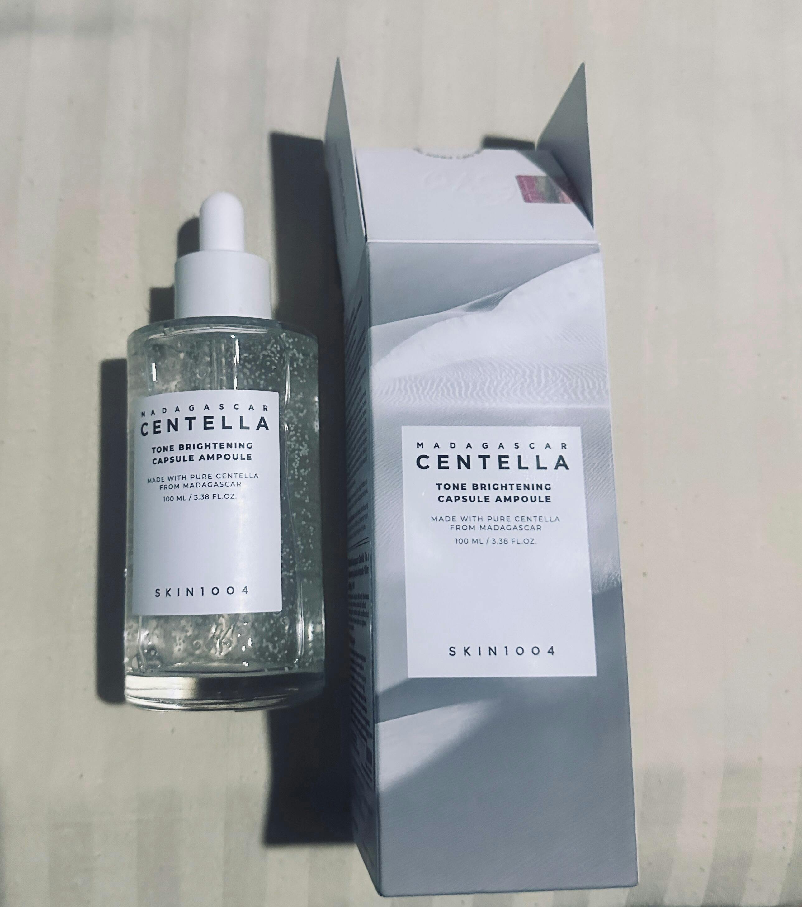 The SKIN1004 Madagascar Centella Tone Brightening Capsule Ampoule is a skincare product that aims to brighten the complexion and improve skin tone. It contains Centella Asiatica extract, which is known for its soothing and healing properties.