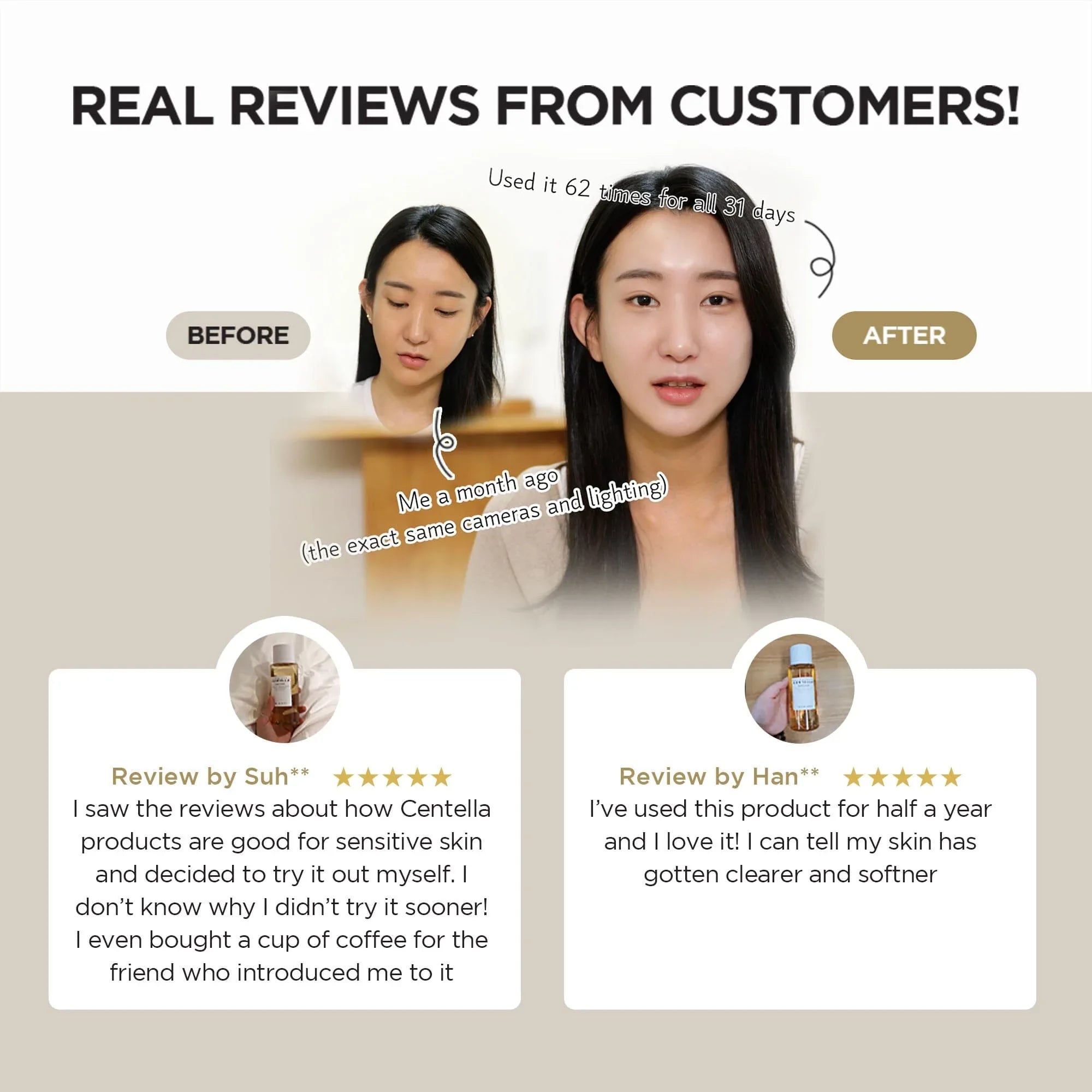 A gentle PHA toner that soothes, exfoliates, hydrates and brightens in equal measure. It contains 84% centella asiatica extract, hyaluronic acid, betaine, alongside other brightening and anti-aging ingredients to produce a fresh, supple, wrinkle-free finish. To use, soak a proper amount in cotton pad and wipe onto cleansed face, patting gently for optimal absorption.