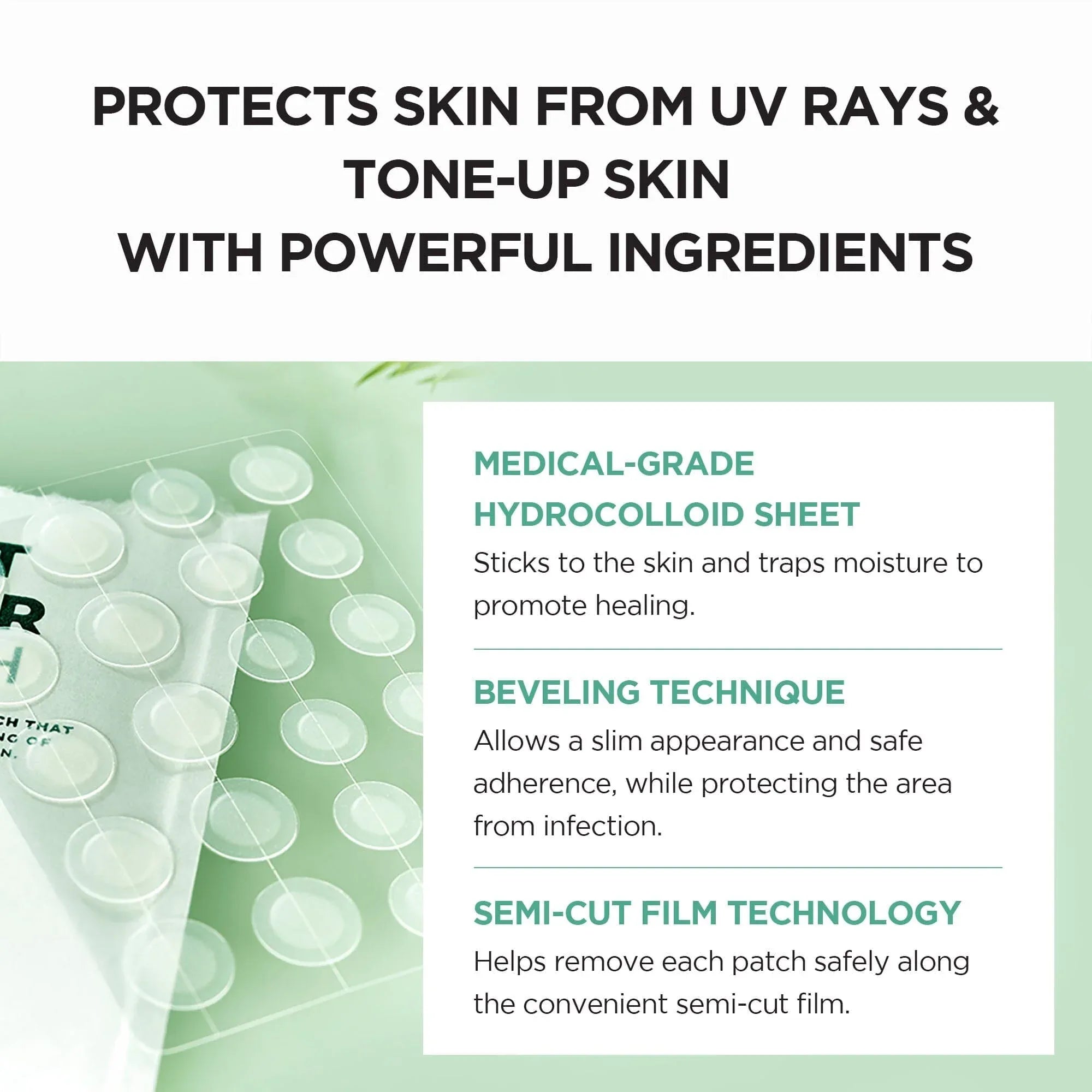 Spot patch for acne SKIN 1004 Spot cover patch 22pcs will act as a first aid before and after an inflammation develops on the skin, shielding it from any harmful environmental effects that might have a detrimental impact on the already inflamed skin. The patches are so hardly noticeable on the skin due to their substance that they may even be worn every day under makeup.