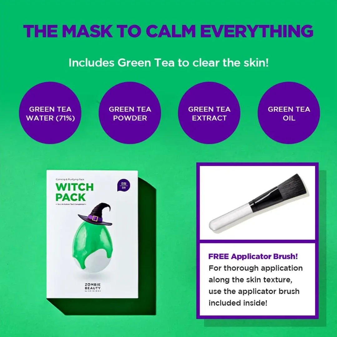This witch-themed rinse-off mask is made with 71% green tea water to soothe and replenish moisture in your skin care regimen. The mask also includes lactic acid, which gently exfoliates the skin to smooth it and reduce the appearance of enlarged pores. The set includes eight mask packs and a mask pack brush.