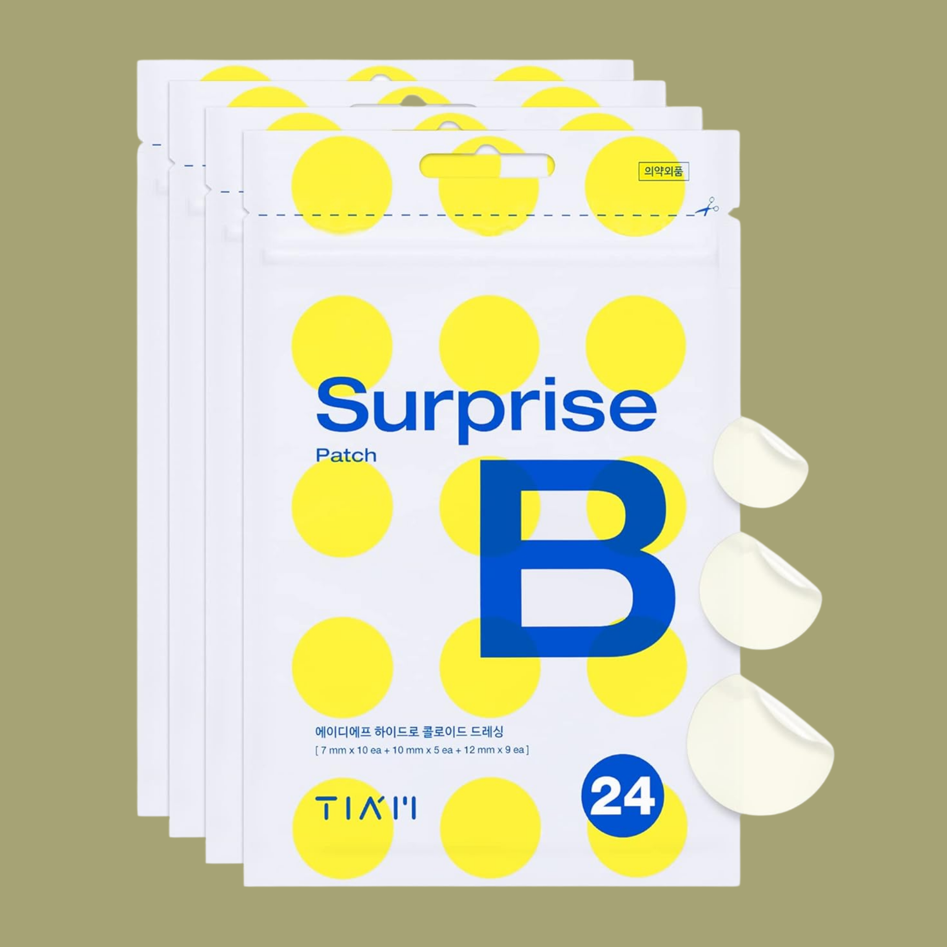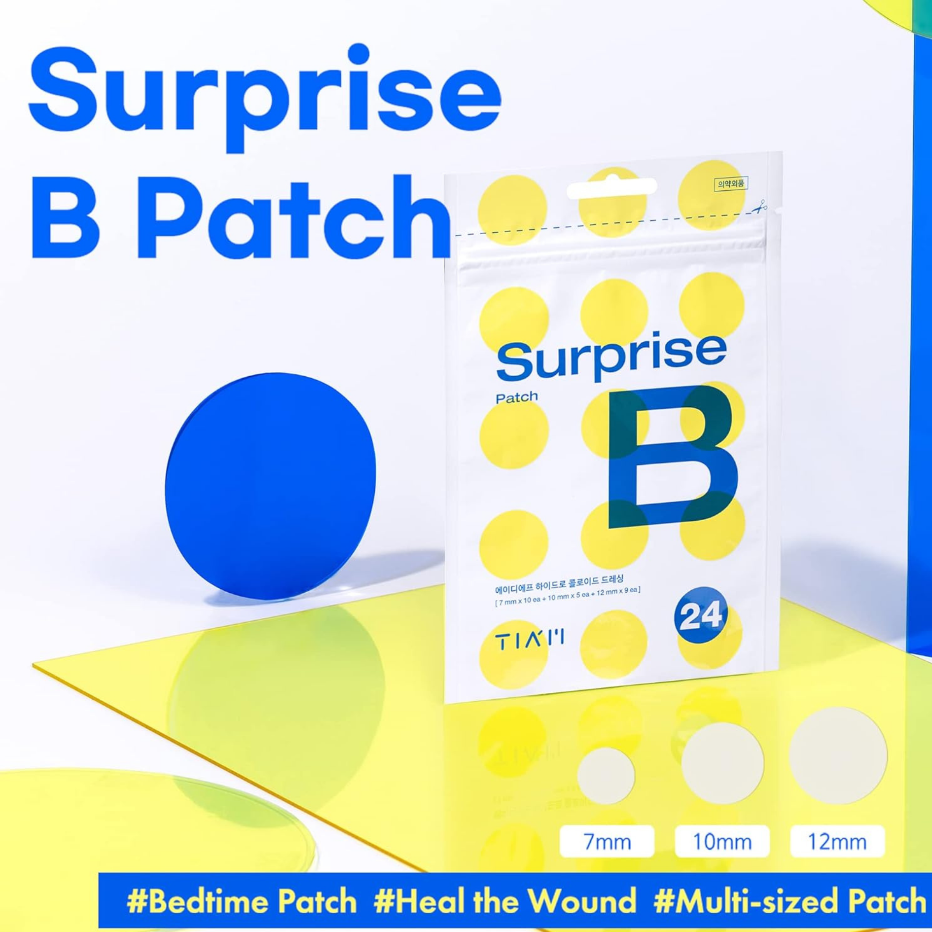 TIAM Surprise B Patch: A hydrocolloid patch that absorbs oil and extracts impurities while creating a barrier that protects against outside irritants. Comes in 3 sizes to accommodate the shape and size of the wound.